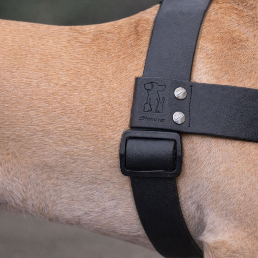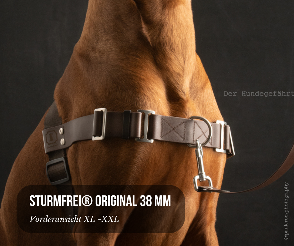 Für besonders kräftige Hunde: extra breite 38 mm Version für mehr Stabilität und bessere Kraftverteilung. Wählen Sie Ihre Variante: Original oder Saver (mit zweitem Bauchgurt).
