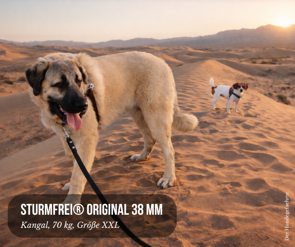 Für Menschen, die eine ruhige, klare Führung wollen – auch wenn der Hund Kraft hat. STURMFREI® stabilisiert ohne im Freilauf zu blockieren und bleibt angenehm im Handling.