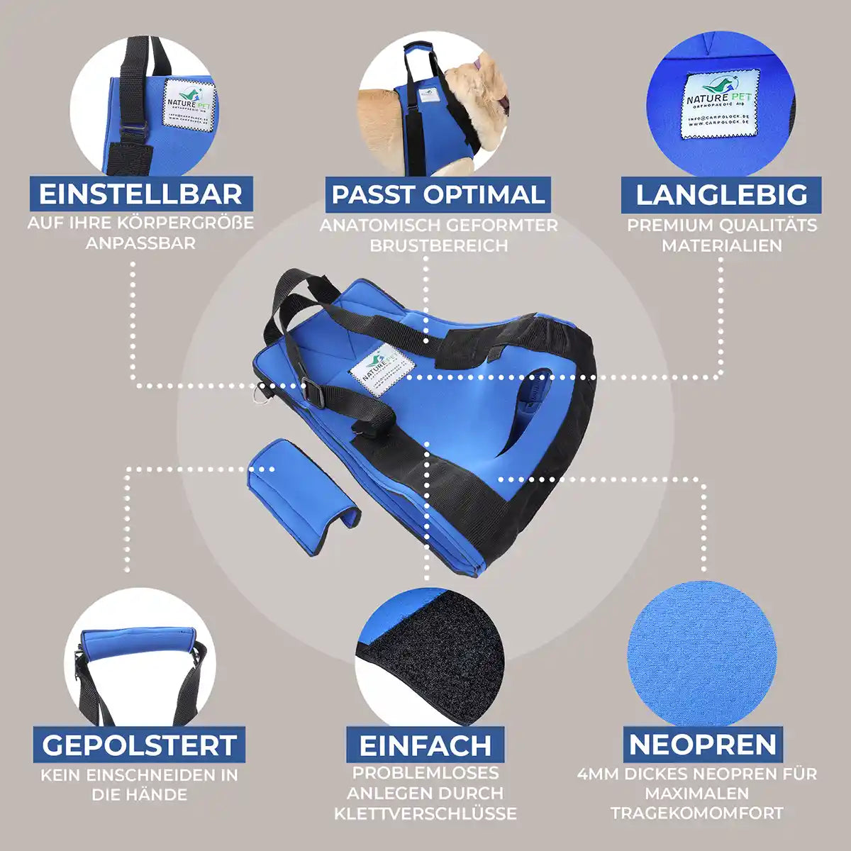 Seit der Gründung verfolgt Nature Pet ein klares Ziel: die Lebensqualität von Hunden mit orthopädischen Einschränkungen nachhaltig zu verbessern – durch durchdachte Produkte, fachliche Kompetenz und Praxisnähe.