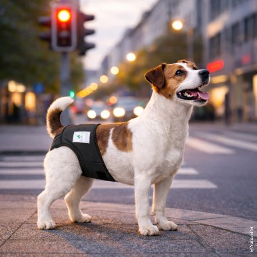 The 30 cm long handle lies on the dog's back and provides the owner with security through quick access in dangerous situations.