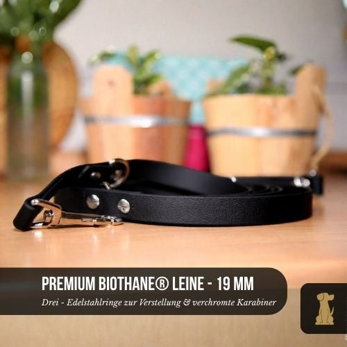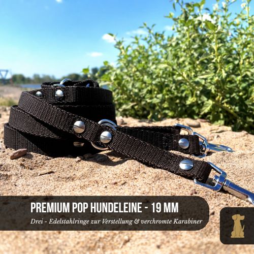 Notre laisse pour chien RATZFATZ se caractérise par sa robustesse particulière et son design impressionnant. La laisse de 2,5 m de long permet un réglage et un ajustement en fonction des besoins de la pièce à l'aide de trois anneaux en D.