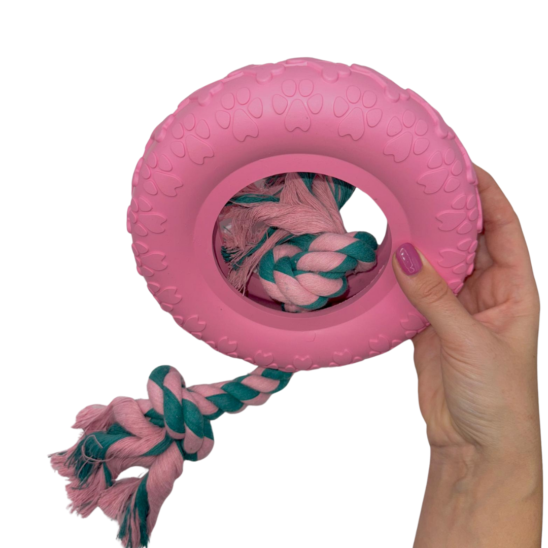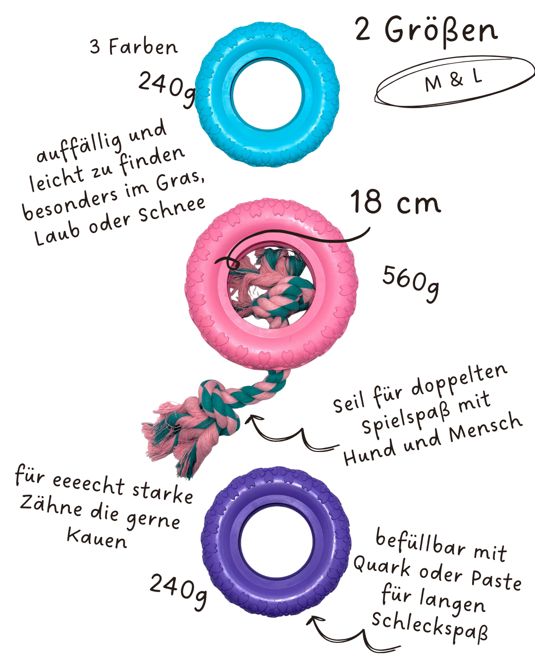 • Größe L: Rosa mit Seil – für größere Hunde und interaktive Spiele