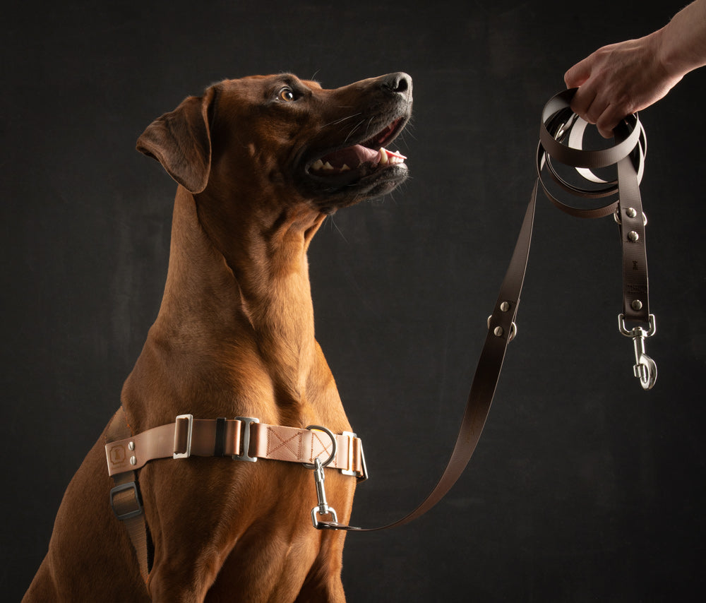 Ridgeback im Geschirr zur Leinenführigkeit
