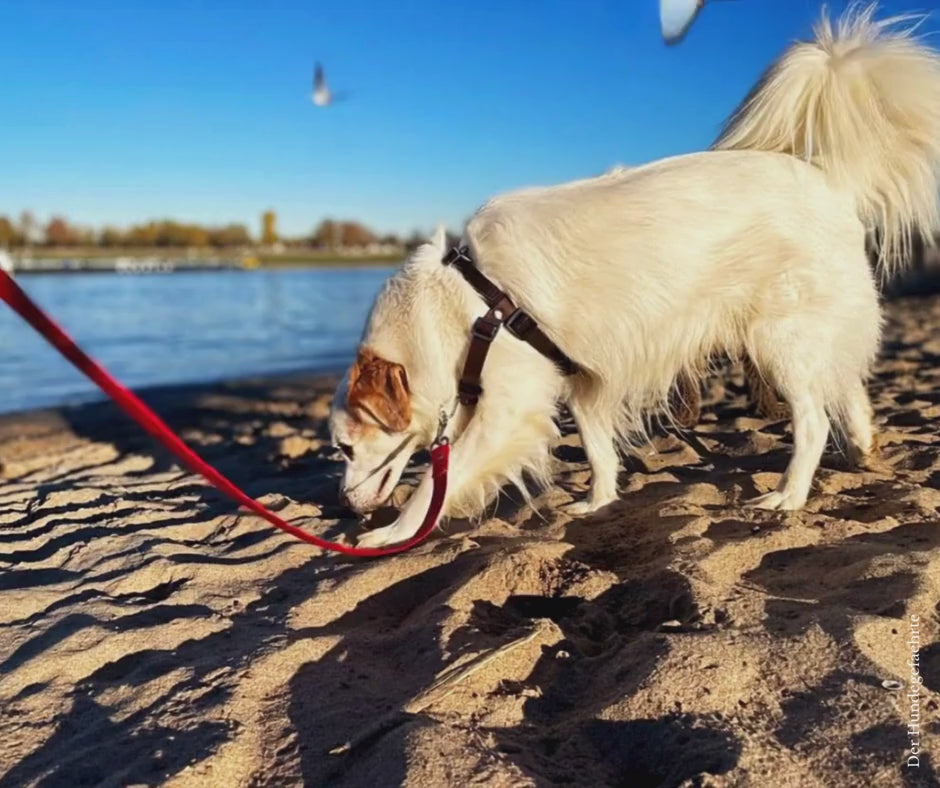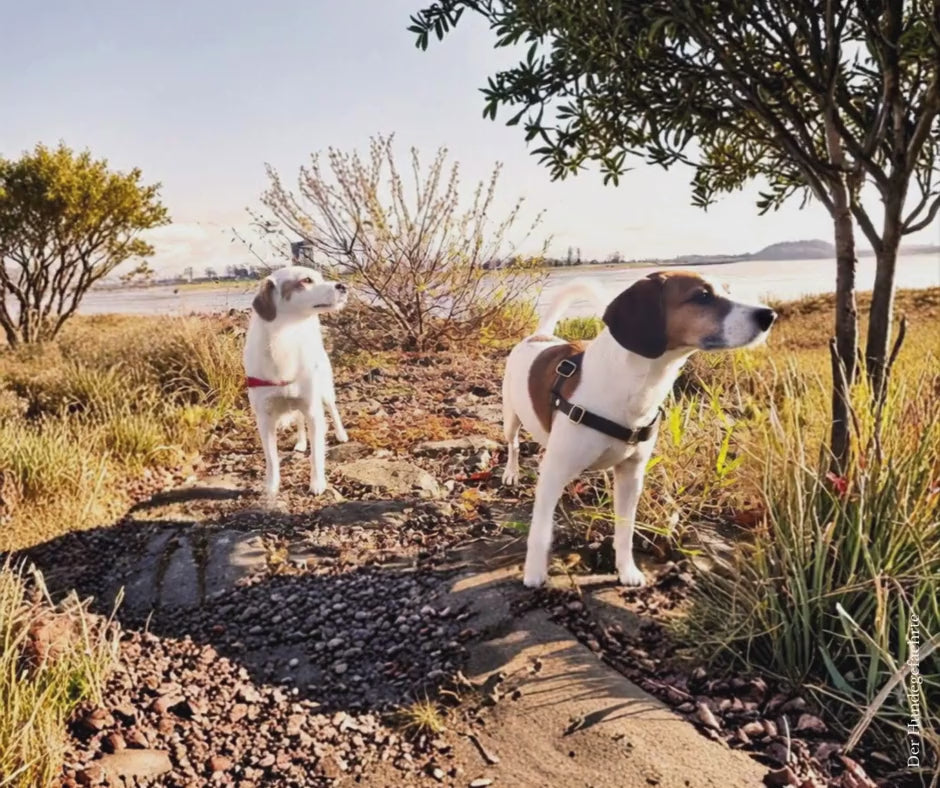 Die Materialbreite beeinflusst, wie deutlich Ihr Hund den Leinenzug wahrnimmt. Je breiter das Material, desto klarer ist das Feedback, sobald Zug entsteht. Manche Hunde reagieren bereits auf eine leichte Berührung im Schulterbereich, wenn die Leine straffer wird. Andere – insbesondere sehr aufgeregte Hunde – benötigen anfangs ein deutlicheres Signal, um abzubremsen.